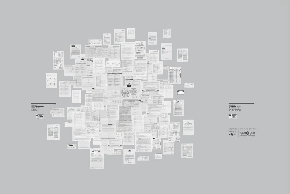 We created posters that juxtapose the documentation required for positive events in people's lives (buying a home, adopting a child, buying a boat) to the purchase of a deadly weapon. All of the events portrayed are based on real stories that happened in each of the listed states.